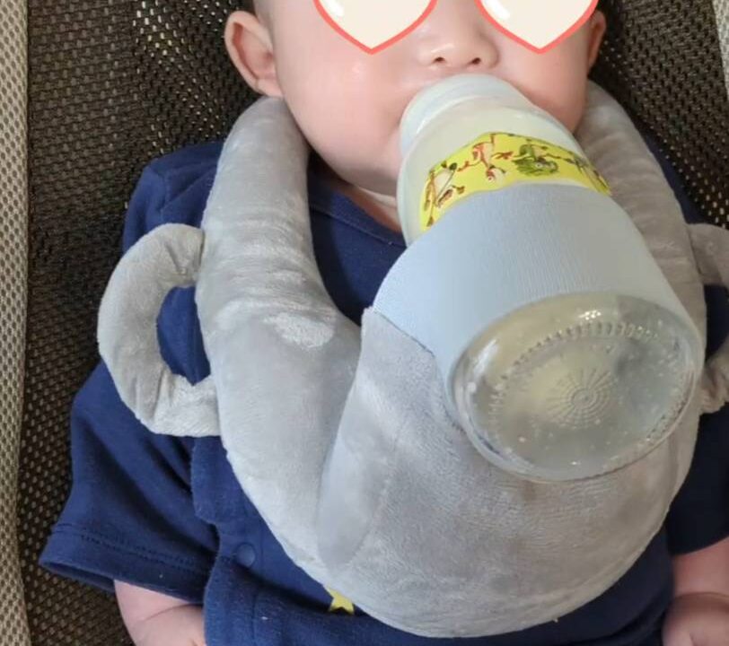 こちらが哺乳瓶ホルダーを使用してミルクを召し上がっているうちの赤ちゃんです(笑)