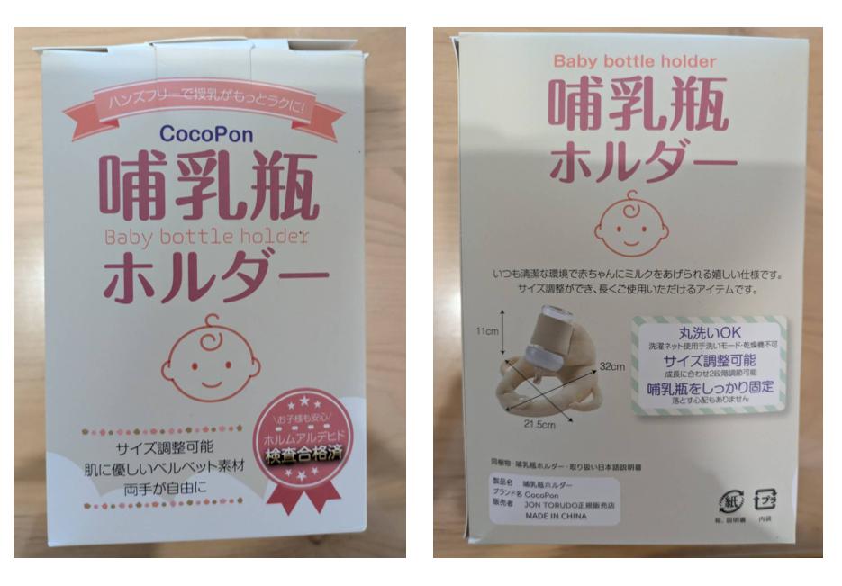 また、CocoPon哺乳瓶ホルダーはホルムアルデヒド検査を合格しており、赤ちゃんに使用するのに安心の製品です。ここをアピールしている商品は少ないかと思います。